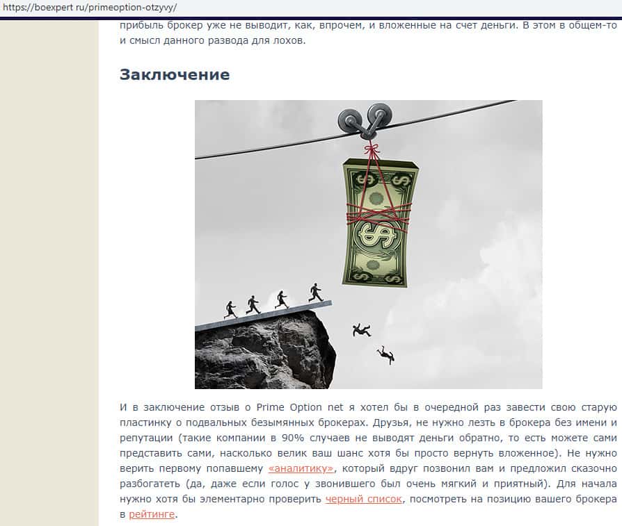Статья об аферистах Прайм Опцион с веб-площадки boexpert ru