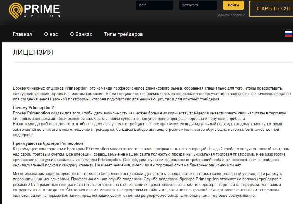 - О лицензии или же регулировании проходимцев PrimeOption ничего не известно