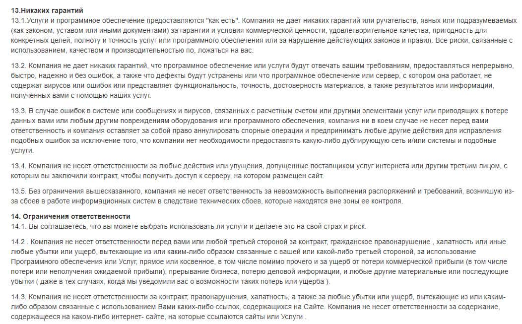 После в условиях сотрудничества у аферистов PrimeOption следует довольно стандартный и ожидаемый раздел, в котором жулье Прайм Опцион отказывается за потери наивной клиентуры, связанные с данным подвальным сайтом и информацией, предоставленной на нем. На изображении, расположенном ниже, вы можете наглядно увидеть данный раздел условий.
