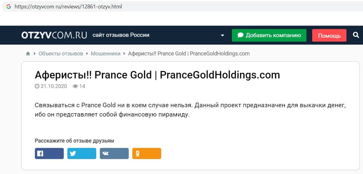 - Мнение интернет ресурсов о компании финансовых мошенников PranceGoldHoldings