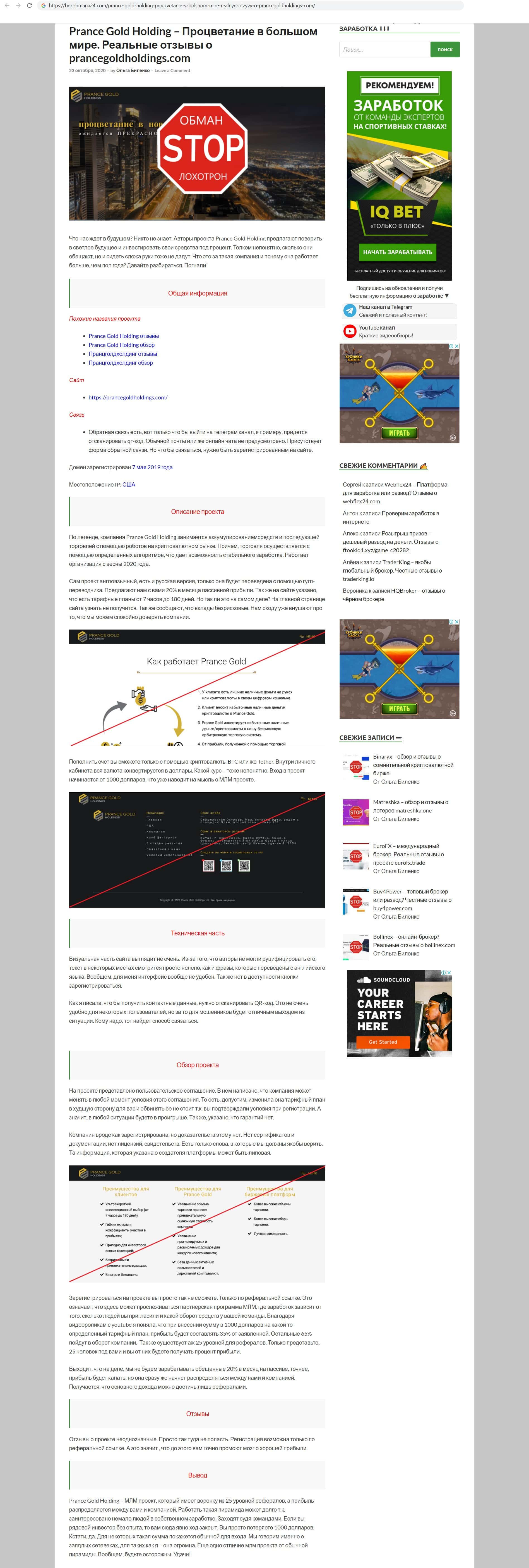 bezobmana24 com - статья о мошенниках PranceGoldHoldings
