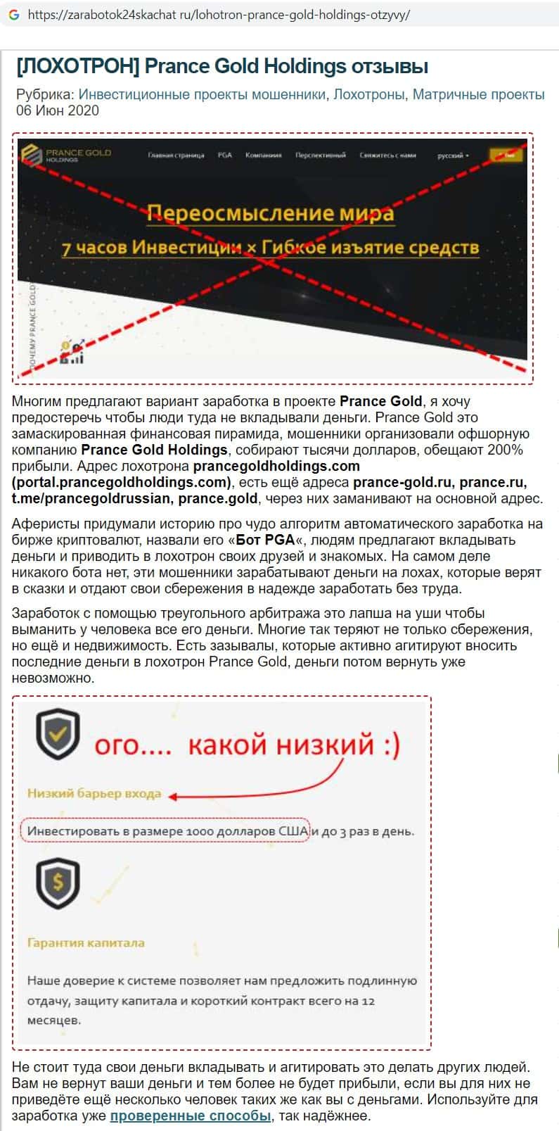 Ссылки на источники информации о мошенническом проекте PranceGoldHoldings: