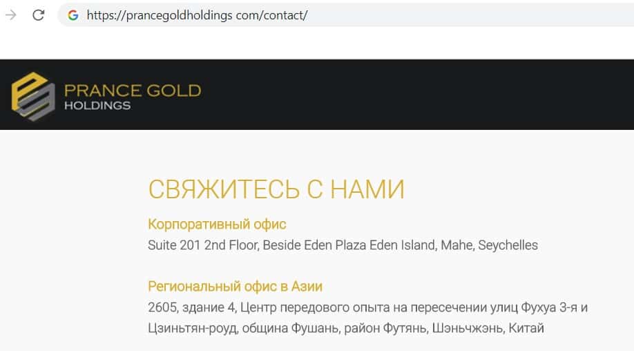 Фирма кидал PranceGoldHoldings указала, что зарегистрирована на Сейшелах, это лишний раз доказывает, что перед нами предстал самый обыкновенный оффшорный мошенник.