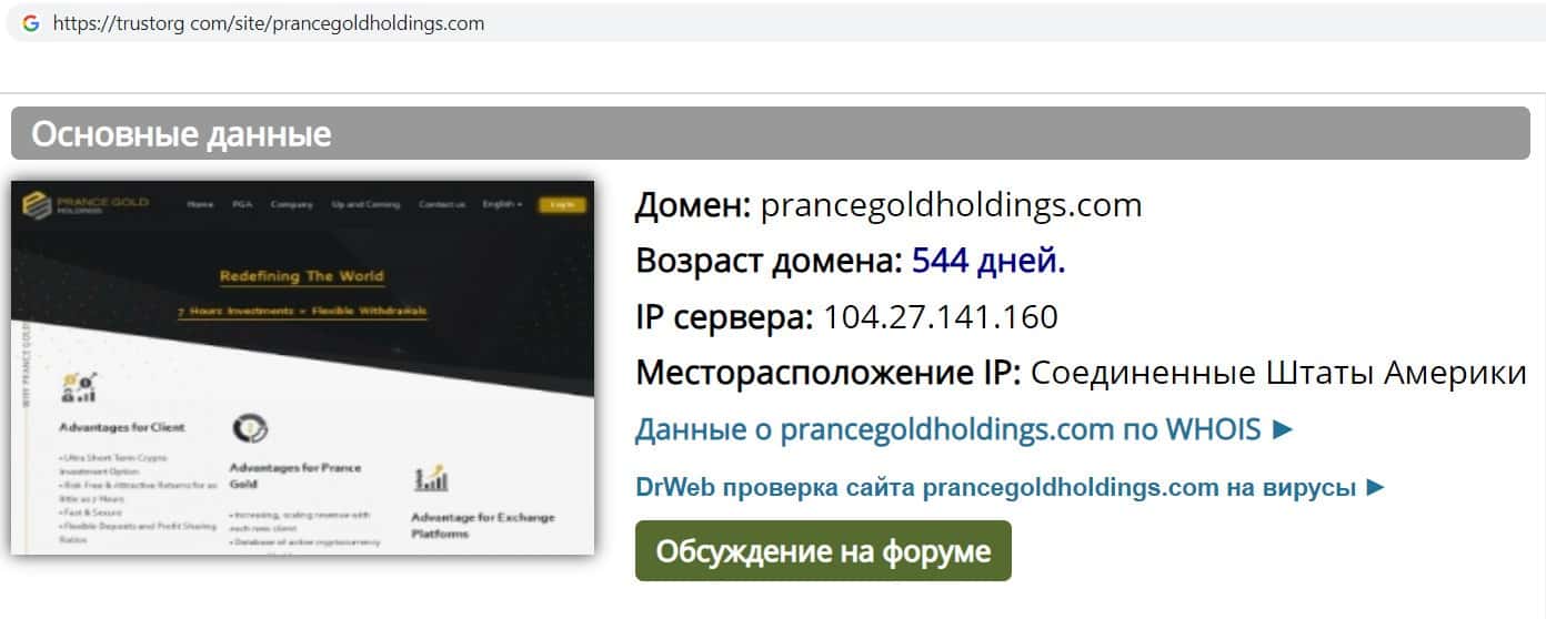 prancegoldholdings com - главный интернет ресурс мошенников PranceGoldHoldings