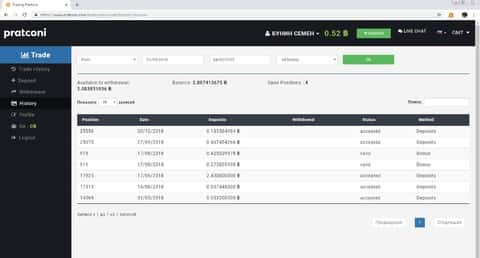 Автор нижеприведенного отзыва описал как его заливали хорошими процентами мошенники ПратКони, нужно только вложить 1,5 - 2 тысячи долларов и он клюнул. Аферисты пообещав одно, делая другое начали проводить дальнейшую мошенническую политику по отношению к своей жертве и решили попросить еще, якобы просадка по счету. Но он начал сопротивляться и жулье само зашло в личный кабинет клиента и открыли еще позиций, чтобы ускорить слив. На все вопросы они отвечают, что хотели как лучше, а все чарджбеки у них проплачены и куплены.