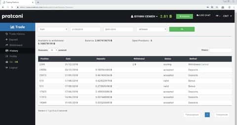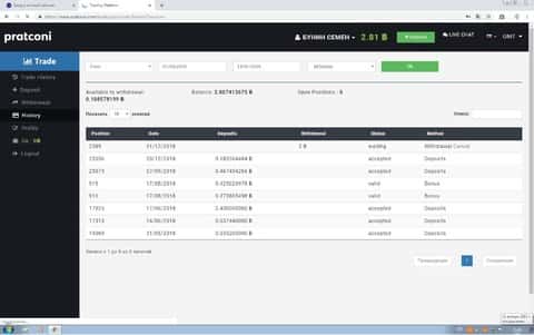 Так выглядит торговый терминал конторы Pratconi, в котором виден весь баланс по счету клиента.