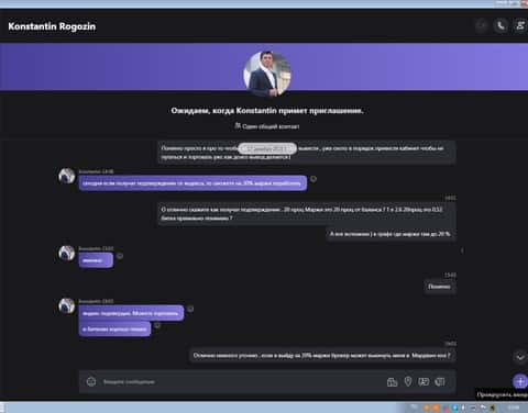 Переписка с одним из шулеров через скайп, который работает в конторе Pratconi. Его зовут Константин Рогозин.