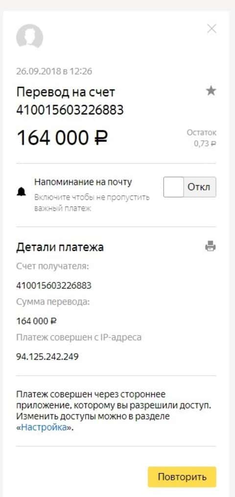 Согласно скриншоту данного чека, можно проследить как 164 000 рублей ушло на счет лохотрона ПратКони.