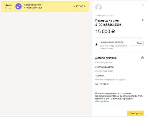 А это скрин перевода на счет шарлатнов ПратКони 15 000 рублей.