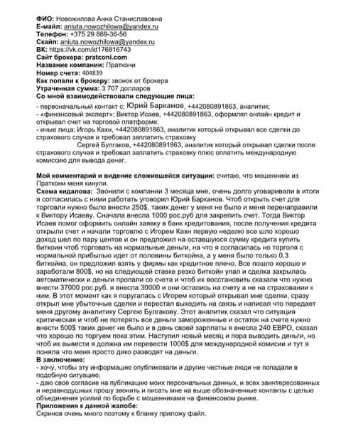 - Жалоба на аферистов Праткони - клиент потерял более чем 1 000 000 рублей