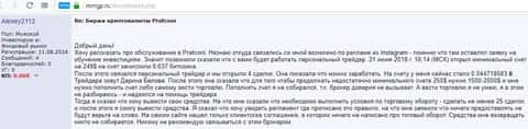 К нам пришло письмо от женщины, которую обокрали мошенники брокерской конторы ПратКони на 3700 долларов.