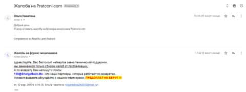Масса отзывов о действиях мошеннической конторы ПратКони