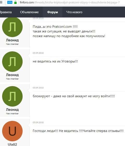 - Масса отзывов о действиях мошеннической конторы ПратКони