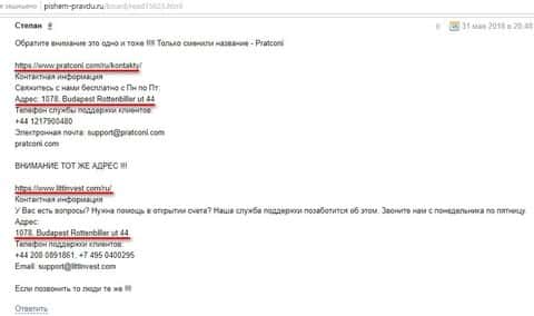- Мошенническая организация Pratconi и LittInvest одна и та же контора