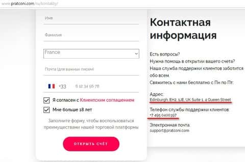 - У форекс-конторы ПратКони адрес прописки не совпадает с телефоном