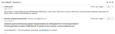 О том, как аферисты Forex PRC Financials развели клиента на 2000 долларов США