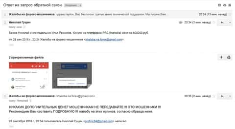 Очередной пострадавший клиент от рук мошенников PRC Financials на сумму в 600 тысяч рублей