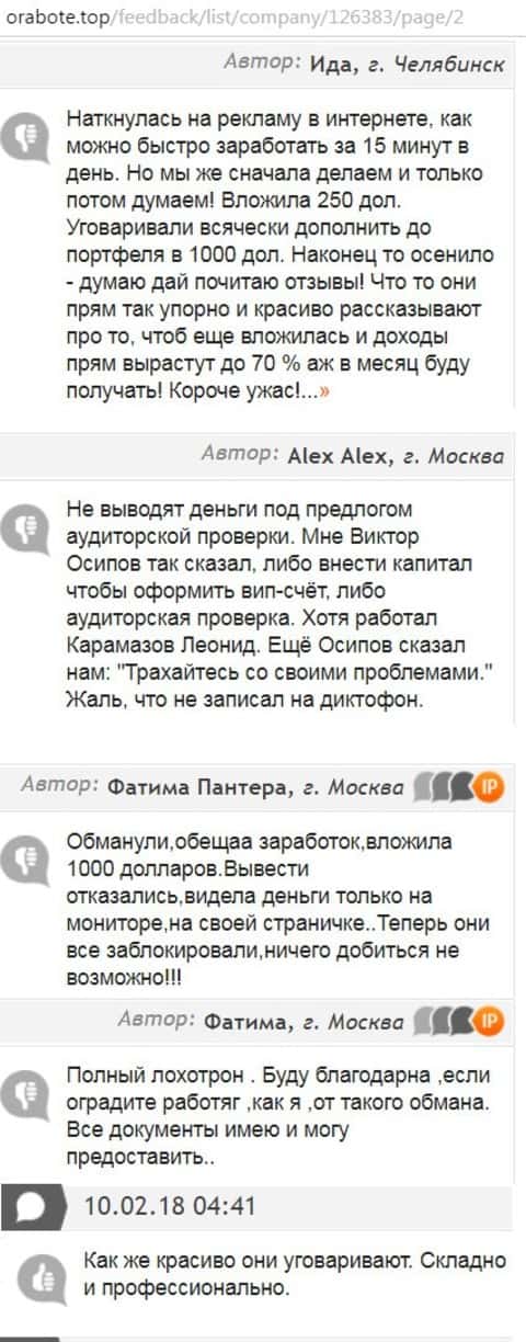 Аферисты форекс-конторы PRC Financials кидают по крупному. В этот раз им удалось развести клиента на 600 000 рублей и глазом не моргнуть. Наверное упыри сейчас ликуют своей победе, а жертва обмана рвет волосы и думает как теперь разобраться с долгами и не пойти под откос. В афере принимали участие псевдонимы лохотронщиков Бежев Николай и его подельник Илья Резников. Но карма настигнет любого. Если они себя повели так, то жизнь накажет в десять раз сильнее.