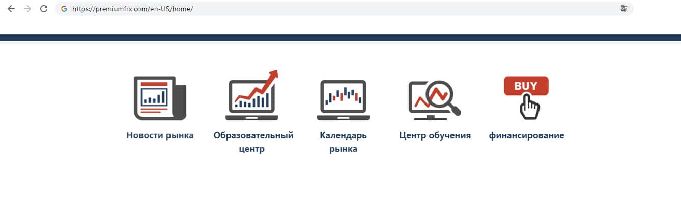 После следует раздел, где клиент может посмотреть новости рынка, перейти в образовательный центр, посмотреть календарь рынка, и пройти в центр обучение. Мошенники PremiumFRX создают ложную видимость того, как они заботятся о клиентах, и что делают всё для их удобства, но на самом деле не всё так просто.