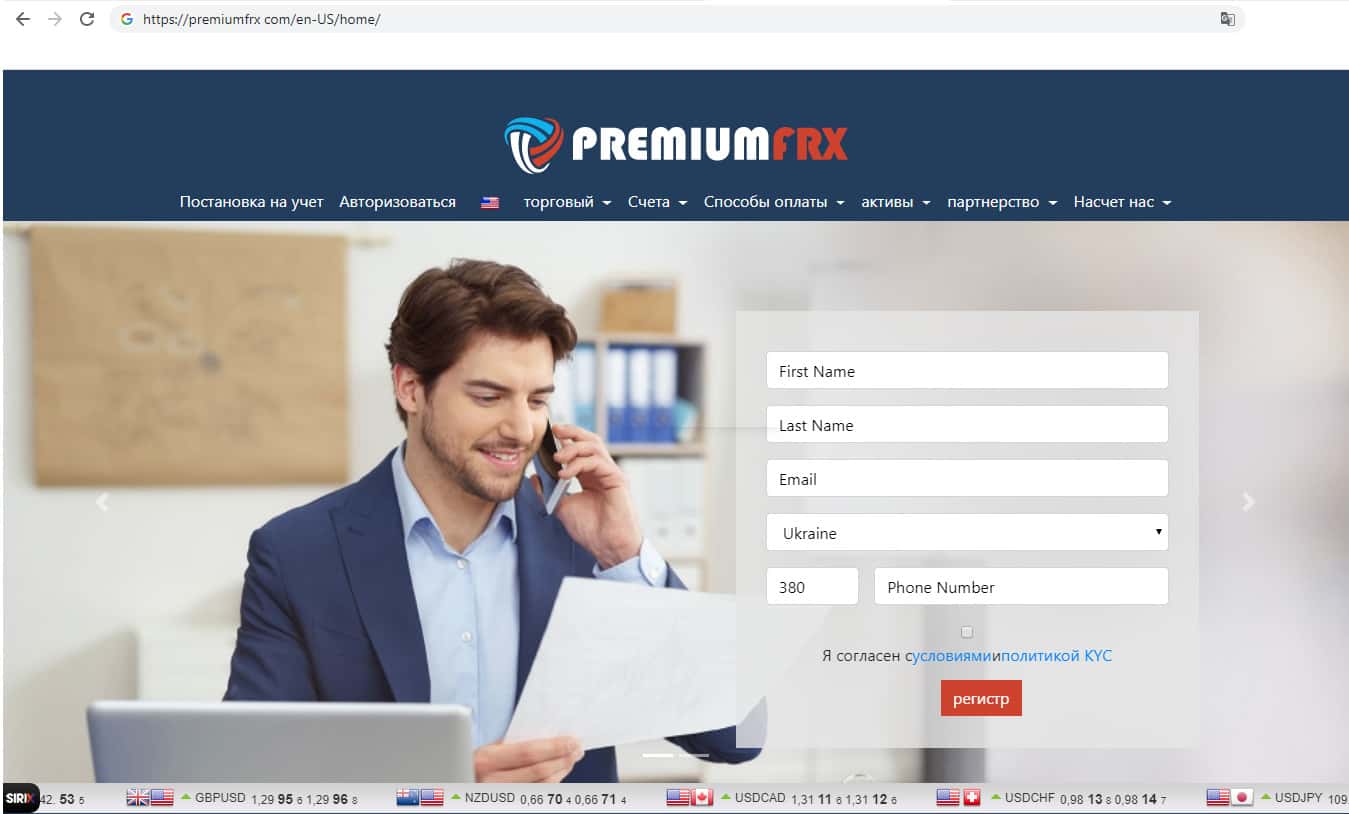 Главный интернет ресурс лохотрона PremiumFRX выглядит буд то его делали в кустарных условиях и на скорую руку. Сам сайт ужасен и неприятен для глаза при просмотре. Встречает нас сайт стразу же с окна регистрации, нет ни пояснений, ничего, сразу регистрация. Опытный трейдер сразу поймёт, что это простой развод, а неопытный может повестись