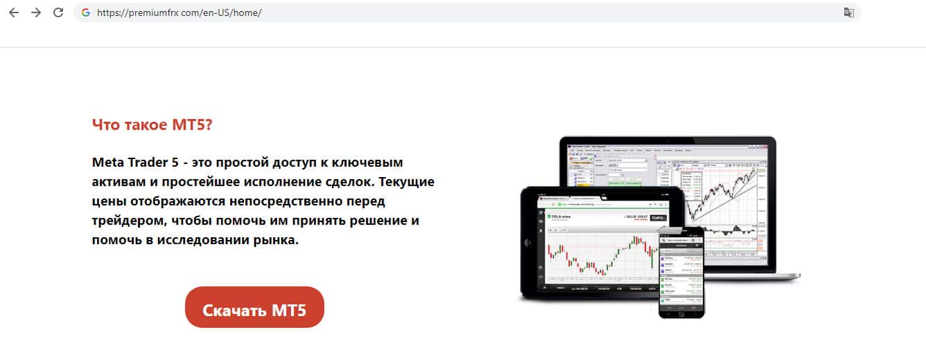 В следующем разделе мошенники рекламируют приложение Meta Trader 5. рассказывают, что это самый простой доступ к ключевым активам и простейшее исполнение сделок. Вот только причём здесь Премиум ФРХ? Это просто заказная реклама, так как многие жулики рекламируют именно это приложение, всё таки это ещё один источник дохода.