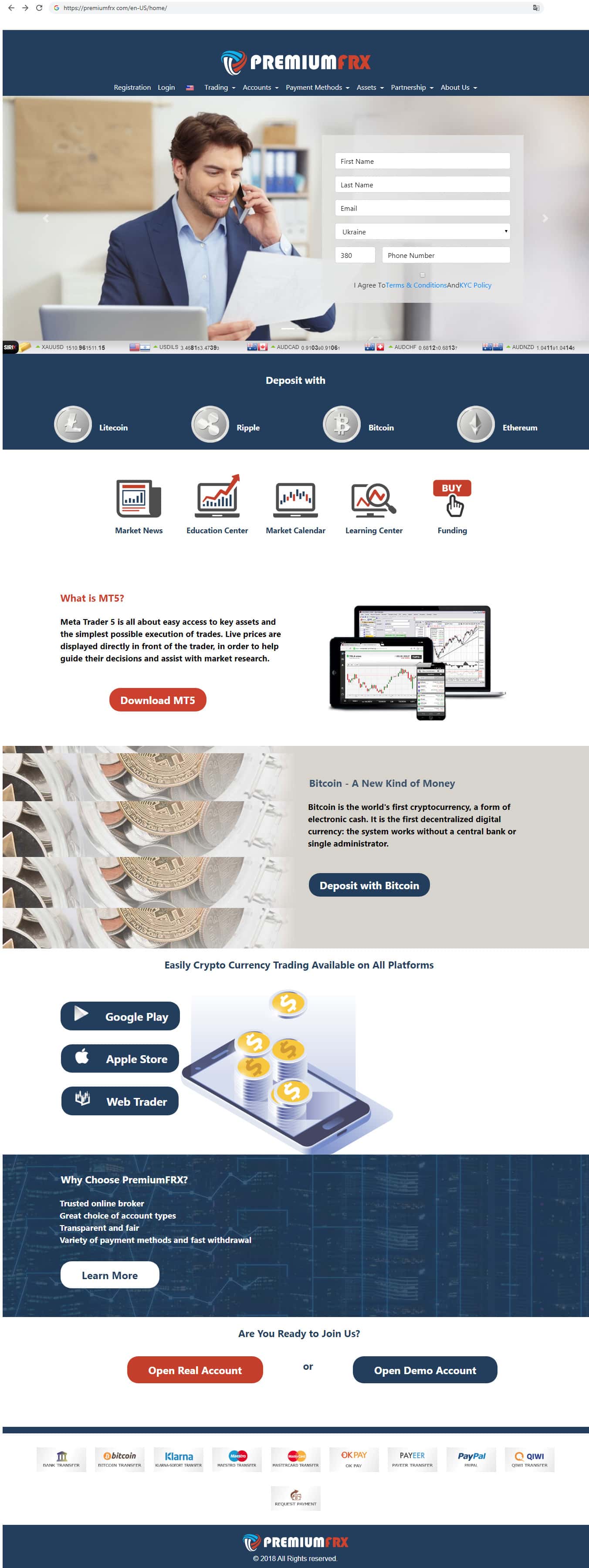 PremiumFRX - мошенническая организация, главной задачей которой является разводить клиентов на деньги. Прикрываются мошенники торговой площадкой, и якобы их площадка лучше чем остальные. Не сотрудничайте с мошенниками, берегите свои деньги.