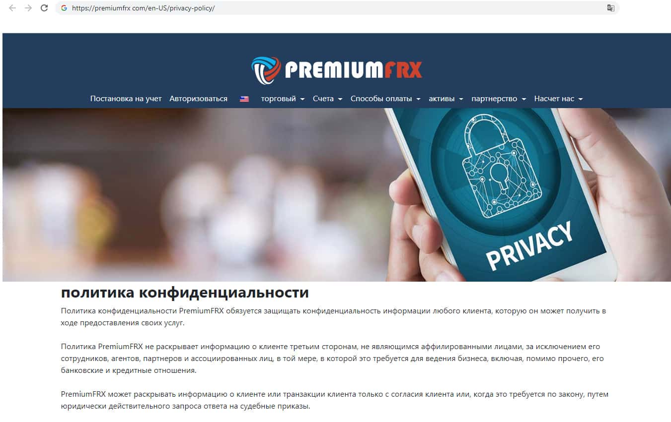 - Жулики Премиум ФРХ предоставили политику конфиденциальности