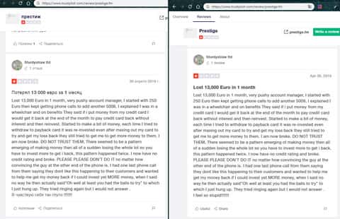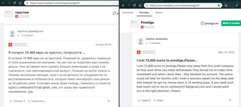 - Мошенники Prestige развели на ввод депозита клиента, после чего потребовали еще денег