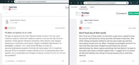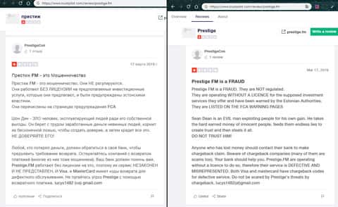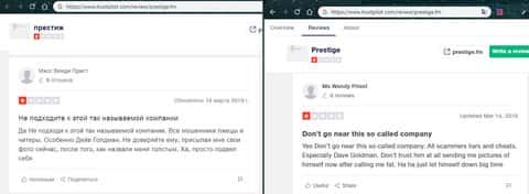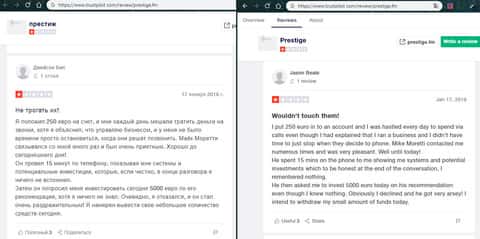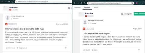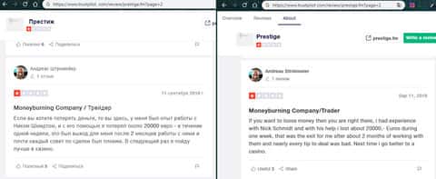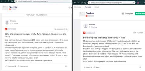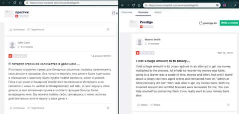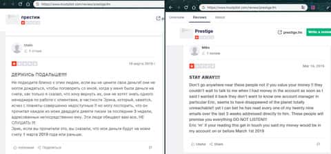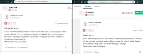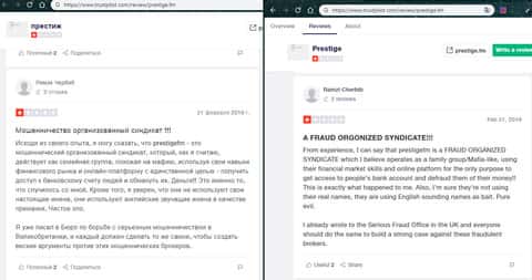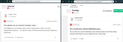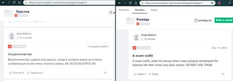 - Еще один негативный отзыв о жуликах Prestige с портала трастпилот ком