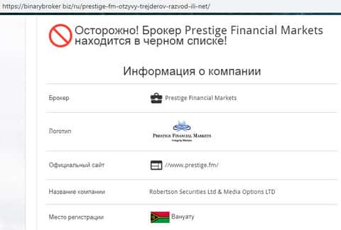 В связи с мошеннической и противозаконной деятельностью аферистов Престиж о них пишут различные источники сети интернет. Одним из таких источников является веб-площадка binarybrokerz biz, которая определенно не имеет иметь дело с оффорным лохотроном Prestige. На изображении, расположенном ниже, вы можете увидеть информацию о мошенниках Престиж.