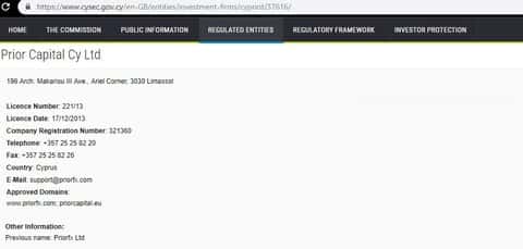 Мошенники брокерской конторы Prior Capital разместили свой главный офис на Кипре. Компания зарегистрирована и имеет на свою деятельность. Но это не значит, что контора не имеет права разводить людей. На территории Российской Федерации все эти липовые лицензии с офшоров не несут никакой юридической силы и обворованные граждане, которые будут ссылаться на этот документ по сути не имеют никакой защиты перед мошенниками.