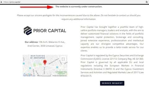 Аферисты брокерской организации Prior Capital особо не вкладывают деньги в свой сайт. На данный момент веб-сайт prior capital находится в стадии разработки, а вот мошенническую деятельность по вытягивания денег с населения они уже ведут. Как можно доверять деньги, если они даже зажали деньги на нормальный сайт. Уже сразу бросается в глаза этот признак скама.
