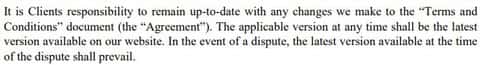 Что касается еще одного раздела в договоре кухни ПриорКапитал, то здесь есть еще одна дыра, на которую мошенники могут опереться. Оказывается клиенты обязаны быть в курсе любых изменений, которые аферисты вносят в раздел "Условия и положения". То есть получается, что вы заключаете один договор, а потом его меняют и вы либо становитесь вообще рабом, либо просто при потери денег ничего не сможете предъявить.