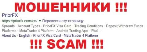 Автор следующего информационного материала в виде негативного комментария о брокерской конторе ПРИОР ФХ ведает прежде всего об ужасной службе поддержки клиентов, которая представлена в сей мошеннической интернет-организации. Запомните, кухня ПриорФх есть ни что иное как типичный forex-лохотрон по разводу наивных людей на деньги.