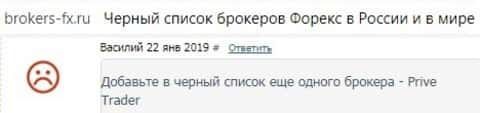 В Сети существуют чёрные списки брокеров-мошенников, и они пополняются всё новыми и новыми именами изо дня в день. К тому же, они, один за другим, пополняются именем мошеннической конторы Прив Трейдер. Обусловлено это тем, что пользователя раз за разом попадают в капканы аферистов, и пытаются предупредить других об истинной сути PriveTrader.