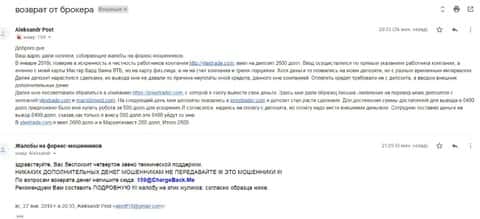 В этот раз контора была не главной в афере. Она в ней участвовала, но в роли запасного колеса, чтобы надавить в нужный момент на желание клиента вывести свои кровно заработанные деньги. Схема же началась с двух других контор, Ютекс Трейд и Маррет Инвест, которые один за другим, по стандарту, потребовали у клиента общую сумму в 2800 долларов на свой депозит. После этого мошенники подрисовали на своей же платформе ему циферки якобы выигрыша, и афера продолжилась с новой силой. Клиенту, понятное дело, отказали в выводе, потребовав вложить еще денег, но он этого делать, к счастью, не стал. К этому времени на его счету якобы была сумма в 8400 долларов, солидные деньги, но не всё так просто. Сама "торговля" осуществляется на платформе мошенников (как Прив Трейд, так и всех им подобных), и никакого выхода на реальных финансовые рынки не имеет, они на счету могут хоть миллион долларов нарисовать, но правда в том, что еще с момента первого депозита, деньги клиента оказались у них. В попытках выманить у клиента еще деньжат, он был передан мошеннической конторе Прив Трейд. Те, в свою очередь, потребовали внесения дополнительных 500 долларов, и тогда якобы 8400 перейдут к клиенту. Надеемся, всем и так понятно, что это наглая ложь в многоступенчатом разводе мошенников во главе с Прив Трейд, рассчитанном исключительно для развода наивных клиентов на деньги. Благо, клиент на это не повёлся, но первостепенные 2800 долларов все ровно ушли в карманы аферистов.