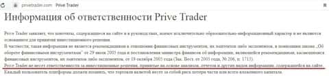 Мошенники Прив Трейдер по обычаю снимают с себя ответственность за потери клиентов