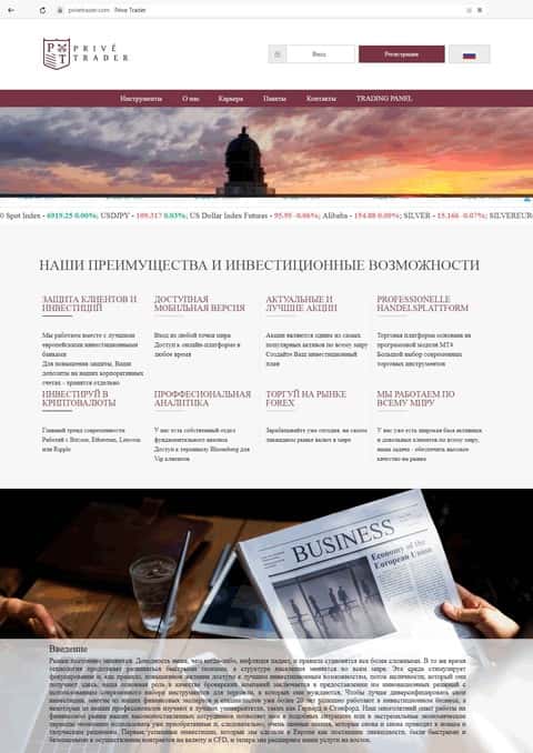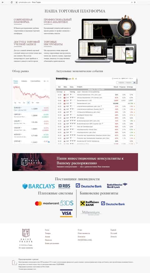 - Веб-сайт мошеннической конторы Прив Трейдер