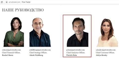Ну и вишенка на торте, руководстве. В случае с конторой PriveTrader, оно представлено вкладкой "О нас". Сейчас мы сделаем одно простое движение, чтобы показать вам всю анекдотичность ситуации. Приведём, к примеру, некоего аналитика по имени Patrick Bain.