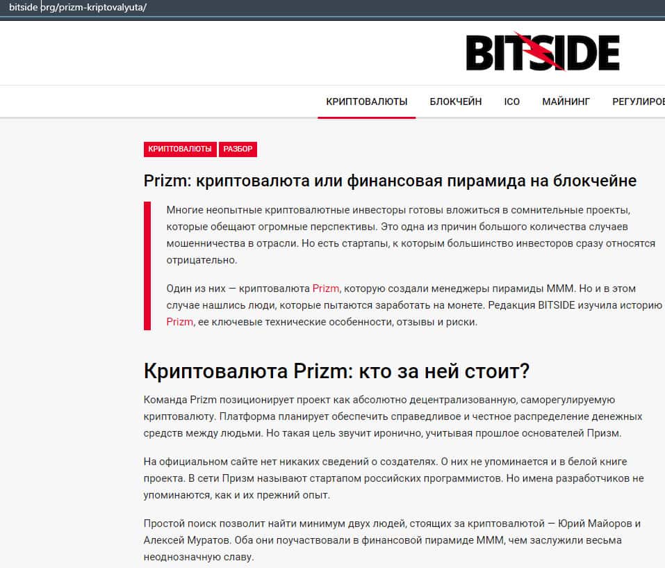 Автором статьи о мошенниках Призм Бит является Соколова Алина Марковна.