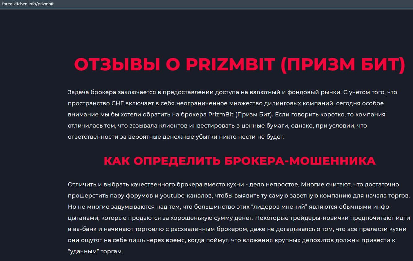 Еще один обзор был найден на одном из интернет-ресурсов. Задача конторы Призм Бит заключается в том, чтобы выманивать деньги из наивной клиентуры.