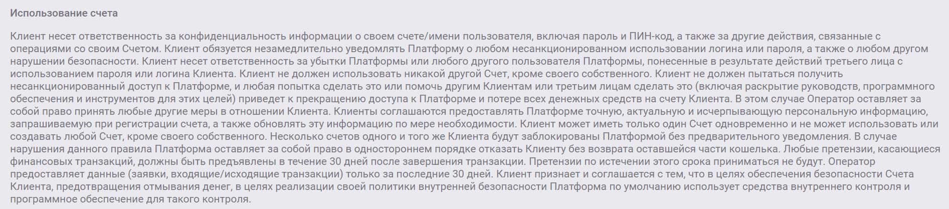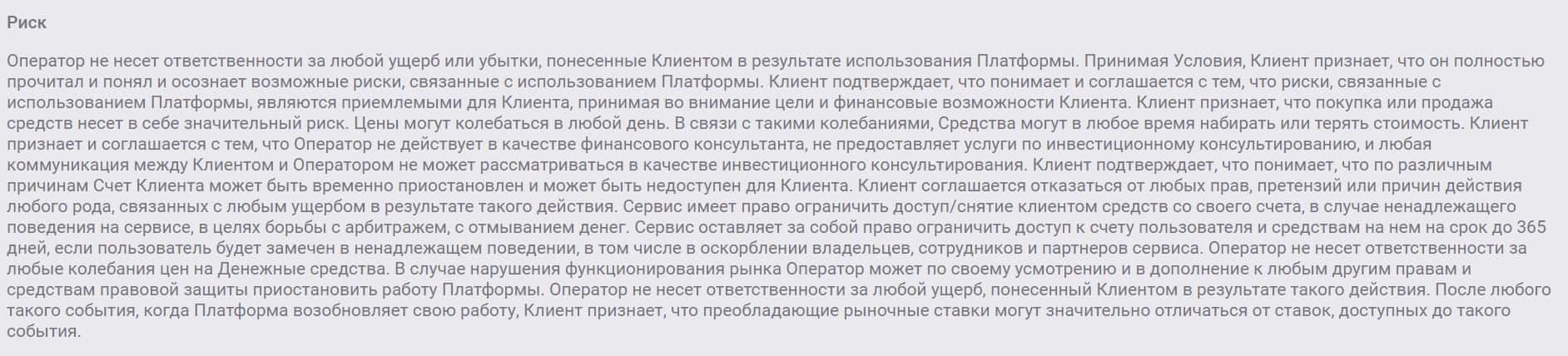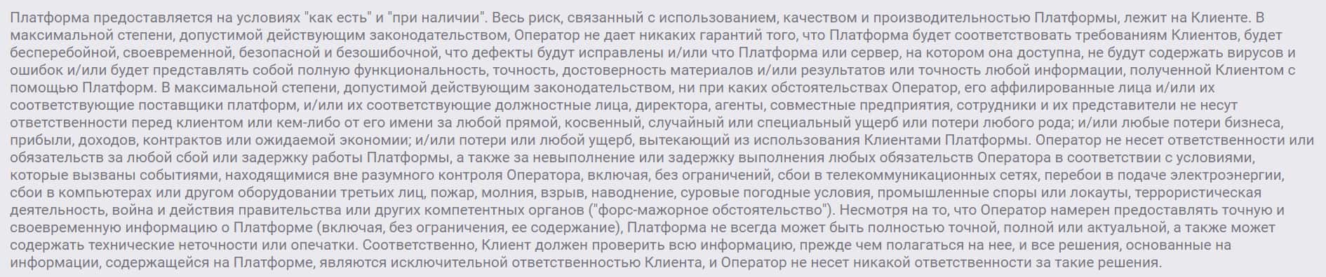 Судя по данному соглашению, мошенники Призма Бит указывают на то, что за многие моменты, должна нести ответственность сам клиент, а не данная компания.