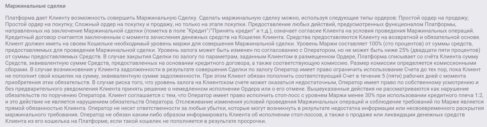 Также если рассмотреть по маржинальным сделкам в конторе Призм Бит, то здесь пишется, что оператор не несет ответственности за любые убытки, которые могут возникнуть у клиента.