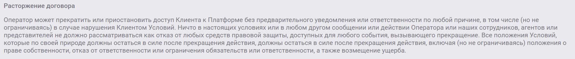 Крипто-контора PrizmBit в любой момент может прекратить или приостановить доступ клиента к платформе без объяснения какой-либо причин.