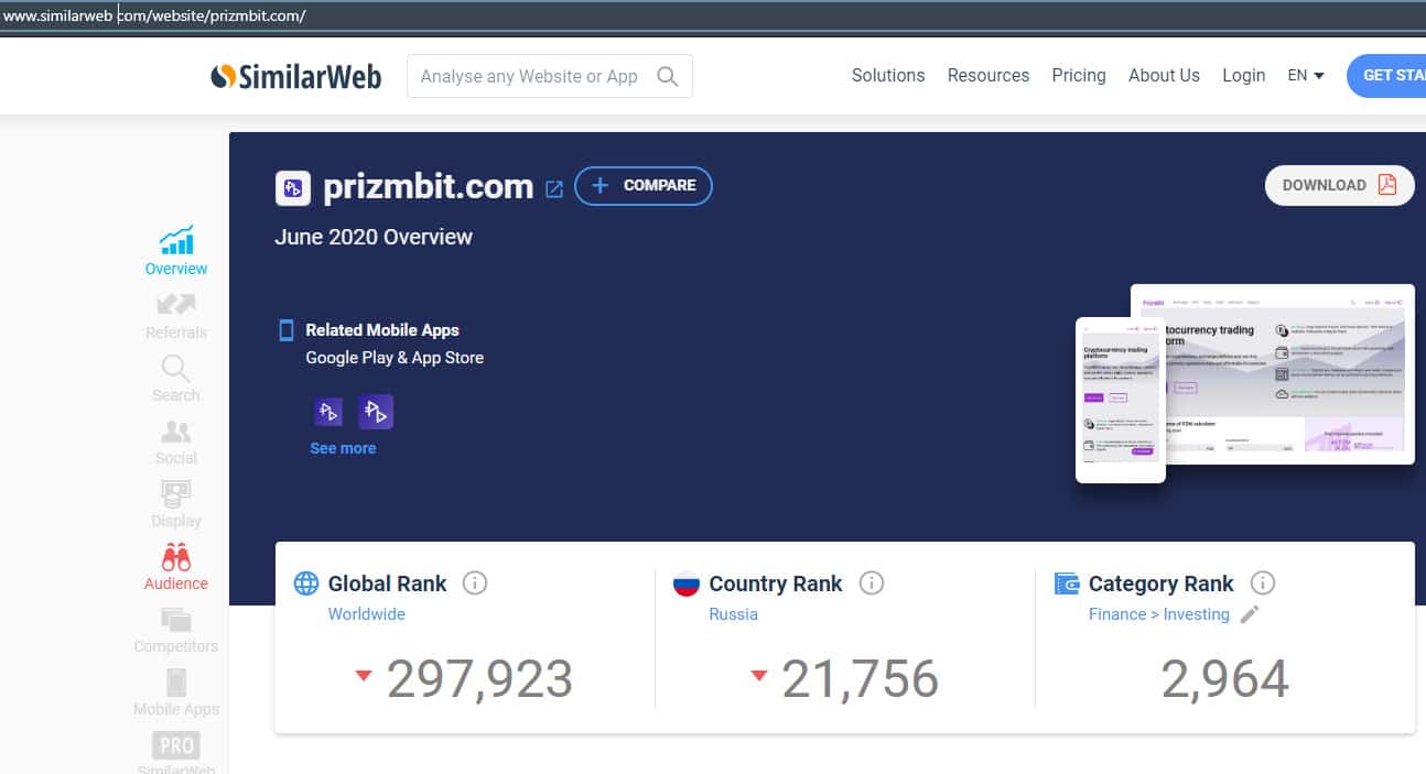 Ну и бренд самого сайта "prizmbit com" в запросах по версии Гугл Тренд также ни разу не был отмечен и это означает о низких рейтингах конторы в поисковых системах.