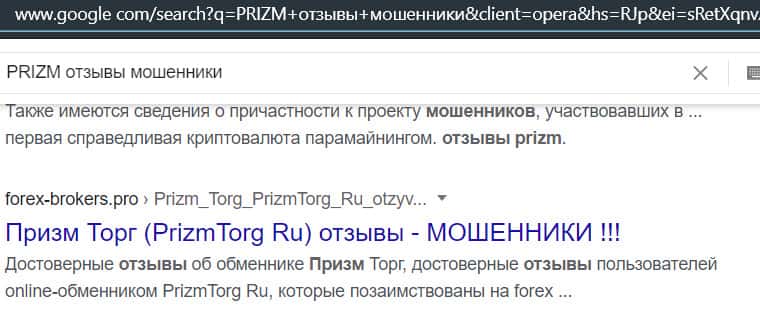 - Негативных отзывов о мошенниках PRIZM не было найдено