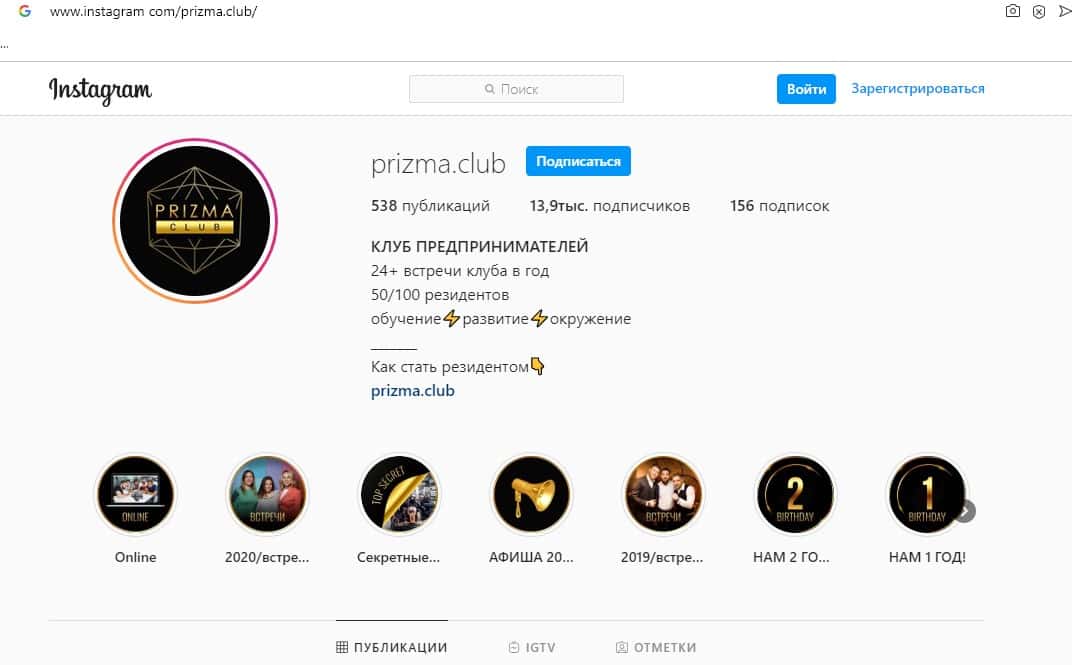 В социальной сети инстаграм находится на данный момент большинство молодого поколения, таким образом, чтобы не терять постоянного наплыва лохов мошенники Призм создали аккаунт, но к несчастью для них подписчиков а значит людей доверяющих этому лохотрону скудно мало.
