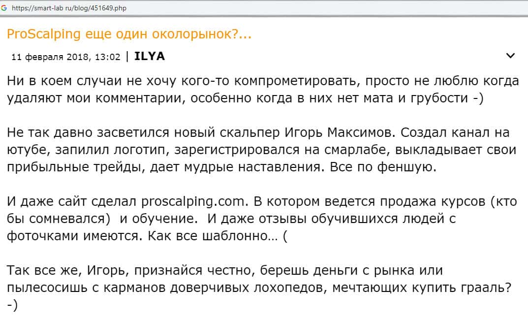 smart-lab ru - сайт с мнением об мошеннических деяниях конторы ProScalping