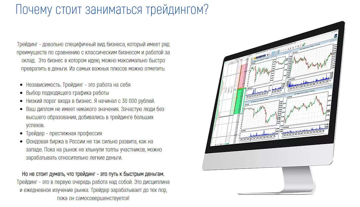 На сайте рассказывается, почему стоит заняться трейдингом, и почему это "выгодно". Но на самом деле, здесь глаголется о простых истинах, которые известны всем, да и в полном объеме. Что можно делать, что не советуется, что такое трейдинг и так далее. Из-за этих "мудрых" мыслей все будущие жертвы прут на данный развод с большой силой, что не оправдано.