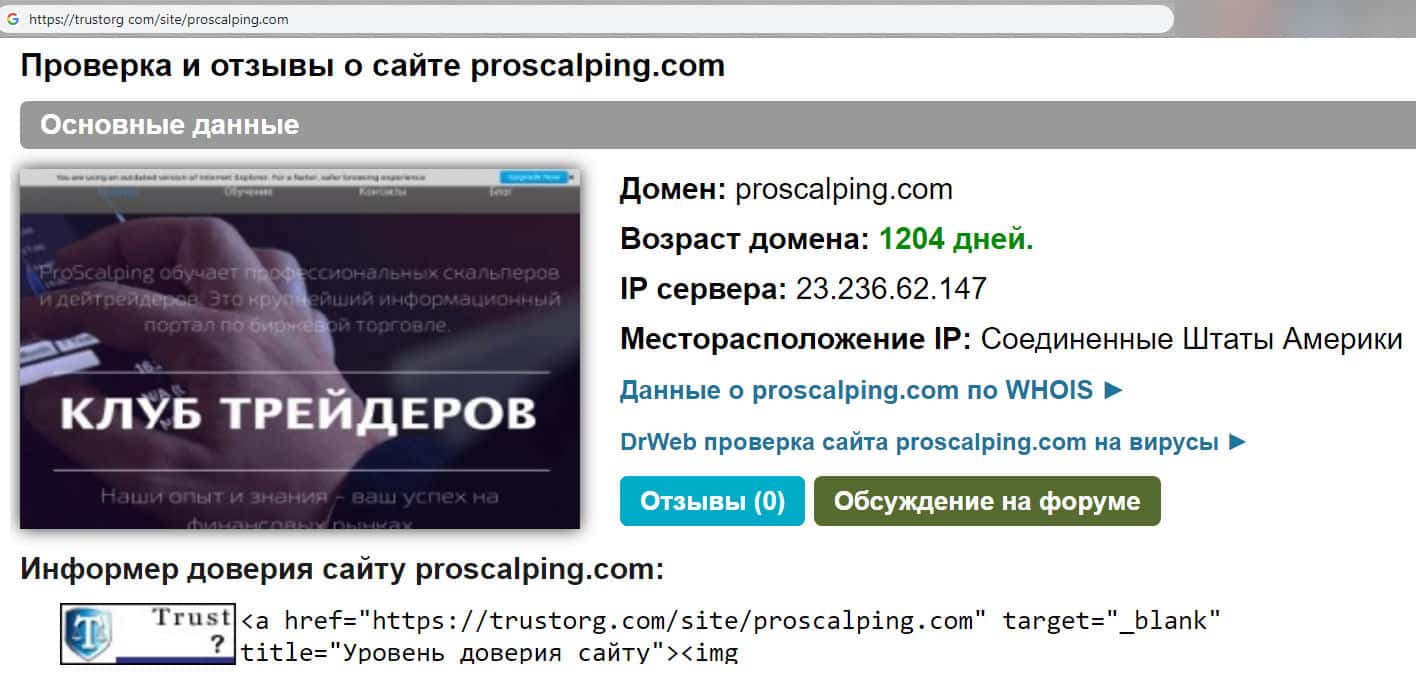 trustorg com - проверка на честность домена мошеннической организации Про Скальпинг